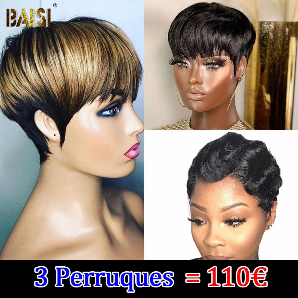 48H Livraison TVA 0€ BAISI 1 Perruque 46€ water wave Fabriqué à la Machine ou 3 Perruques combinée à petit prix perruque 125€ moitié prix en 100% cheveux humains de bonne qualité livraison rapide mp50