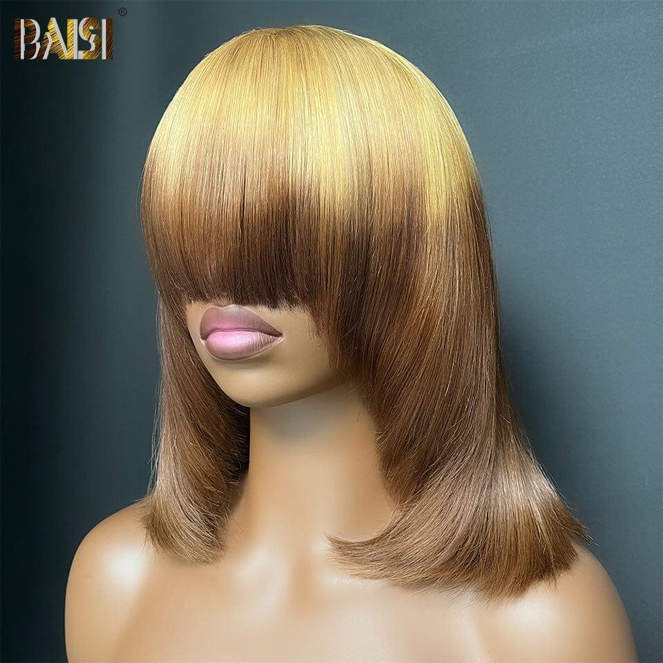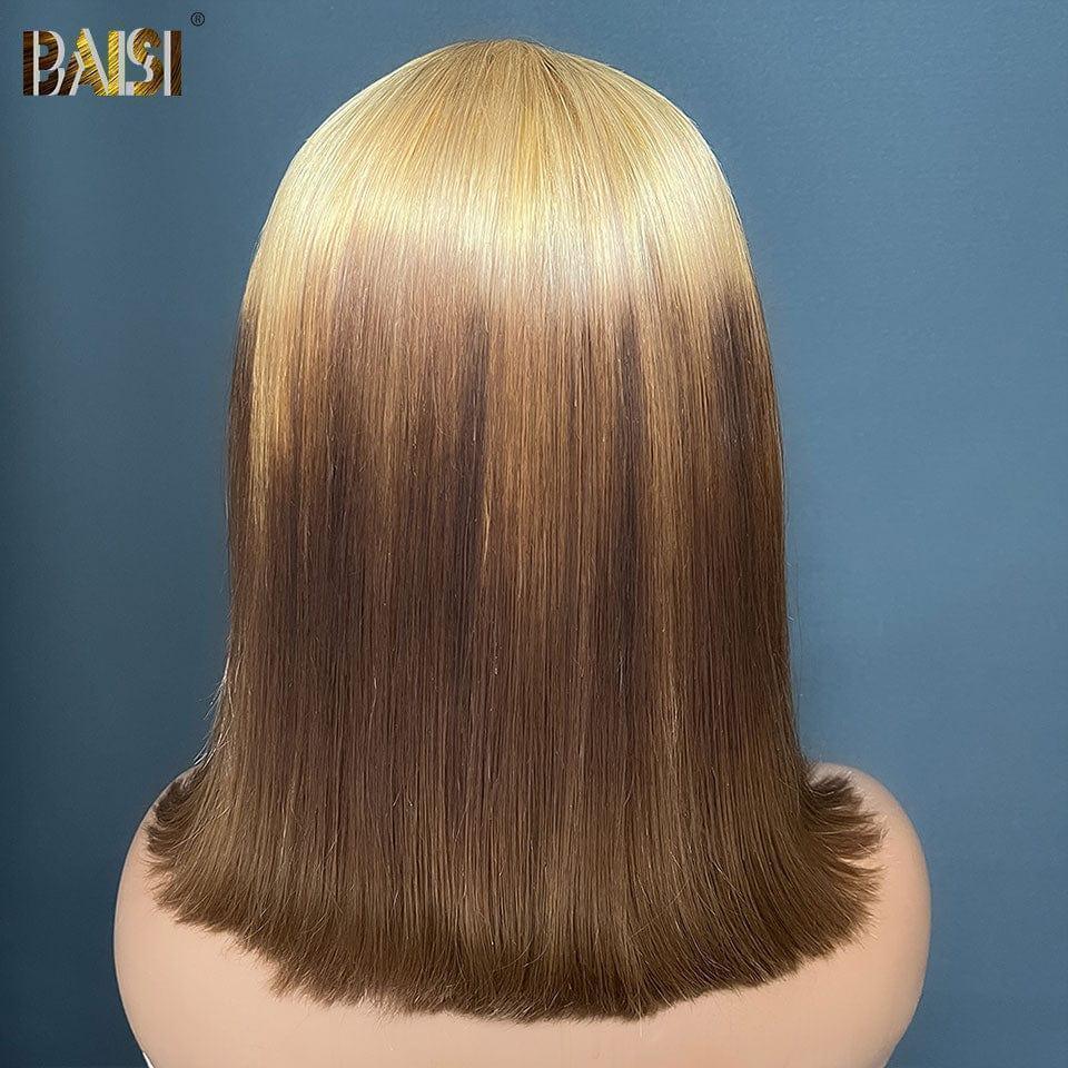 48H Livraison TVA 0€ BAISI Perruque Lisse AVEC FRANGE 69€ en couleur Marron avec racine Miel 27#T4# 300% densité plus de 20 ans d' utilisations FR20