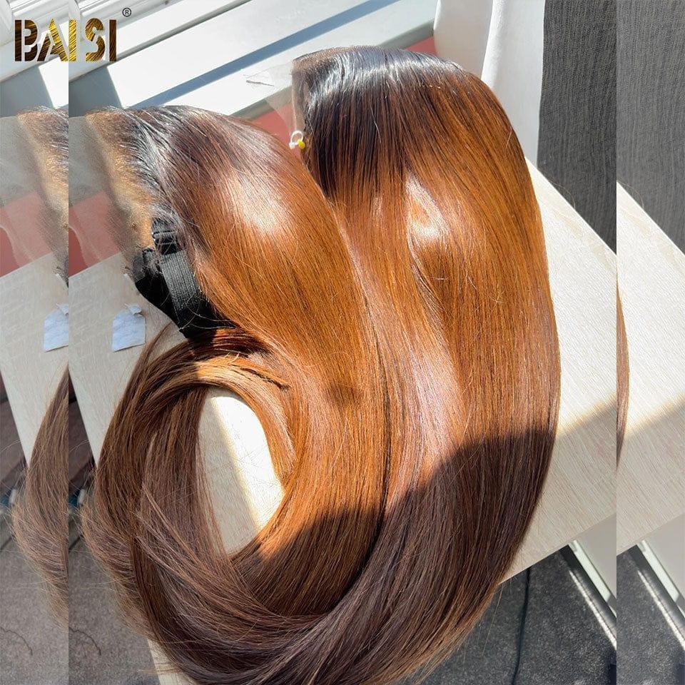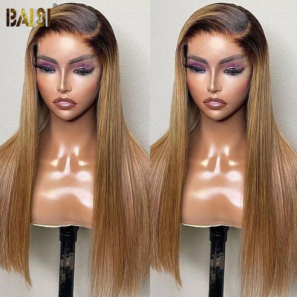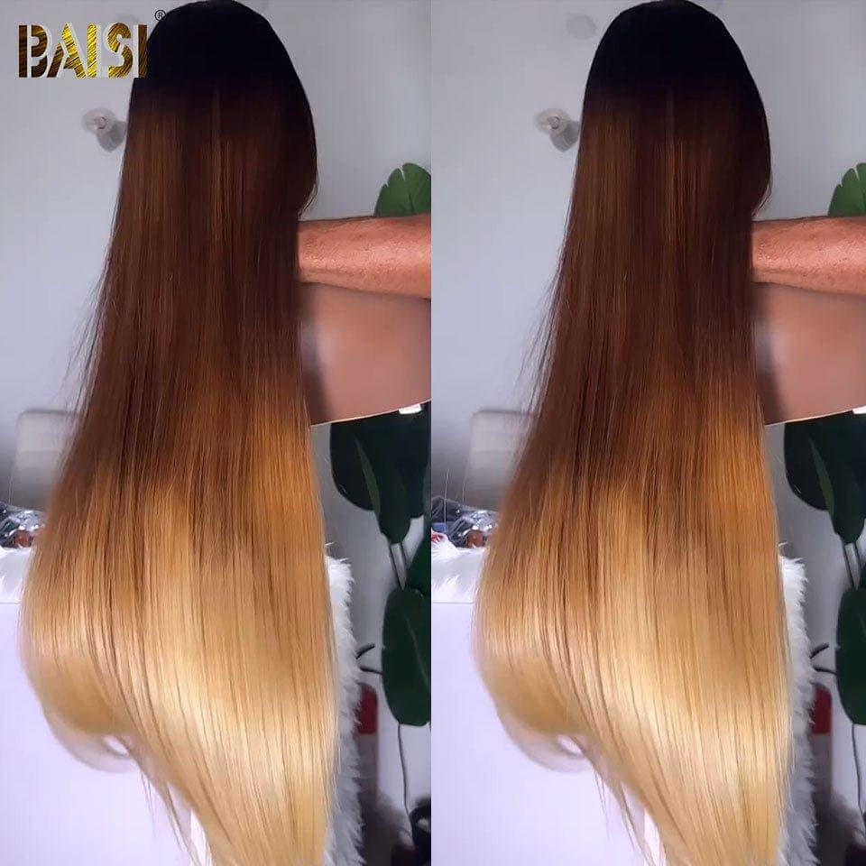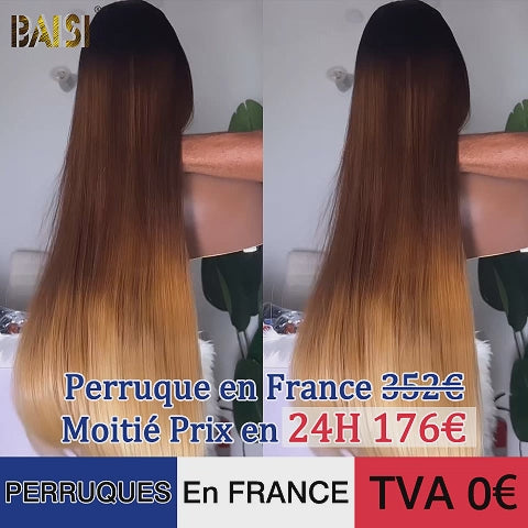 BAISI 13X4 perruque Lisse en Couleur marron Mixte Miel moitié prix en 24H 24 pouce 159€ Sans Colle Lace déjà couper Facile à Porter en 100% cheveux humains