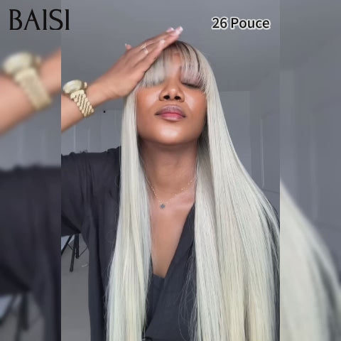 BAISI Perruque Lisse En Couleur Claire 4T70# avec Frange 2 types 100% CHEVEUX HUMAINS
