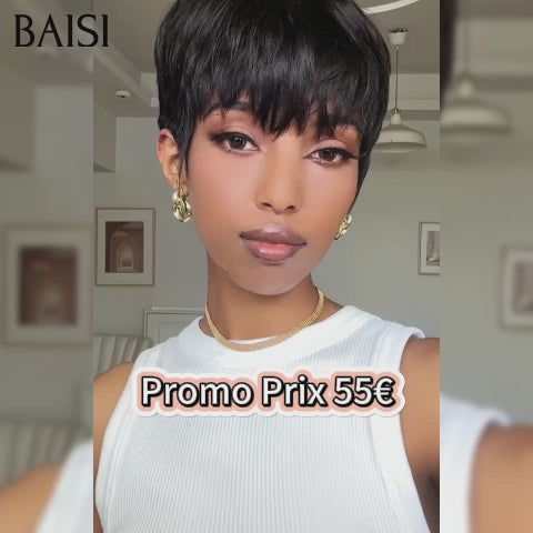 BAISI Perruque Lisse En couleur NATUREL Pixie à la mode Promo Prix 55€ sans Colle en 100% Cheveux Humains #026 BS65