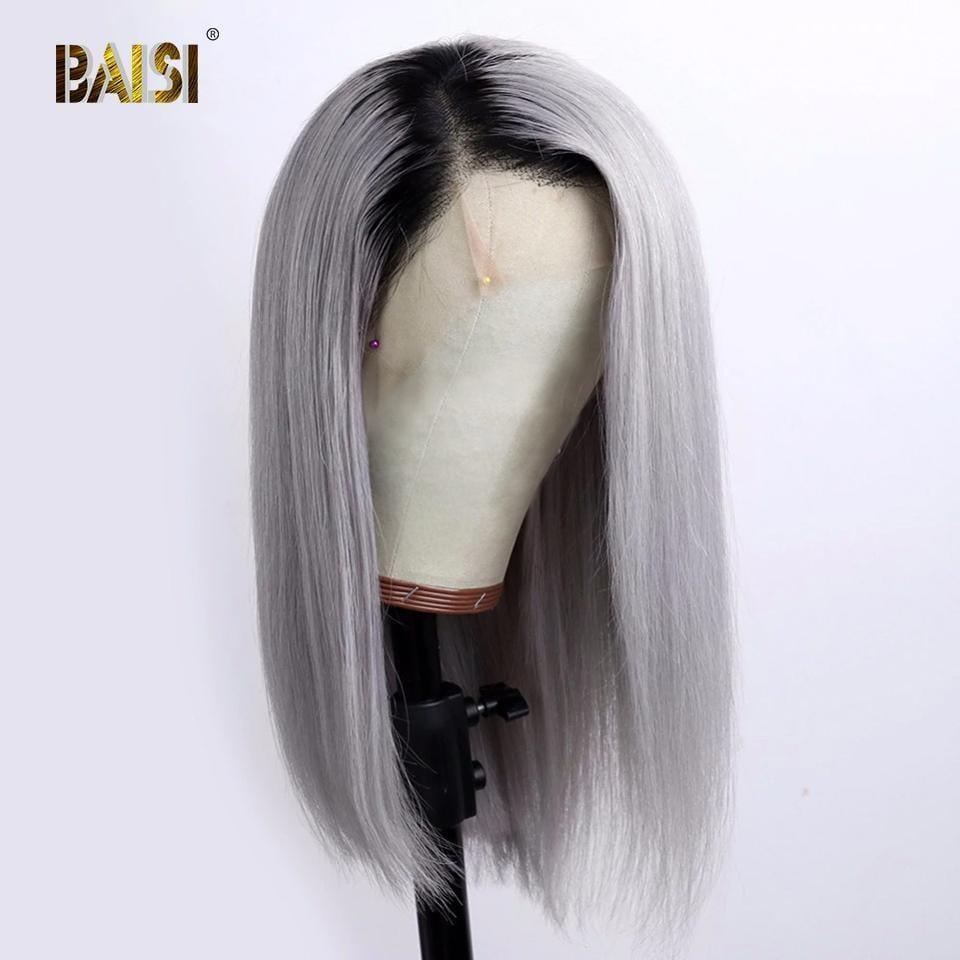 Promo Noël BAISI BLACK FRIDAY Bas Prix 100€ Perruque NOIR 1B Frontal Lace Lisse Straight Cheveux Humains