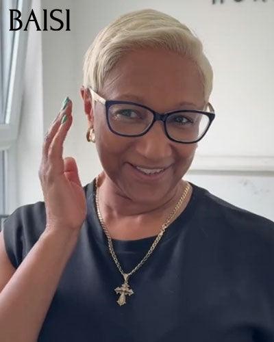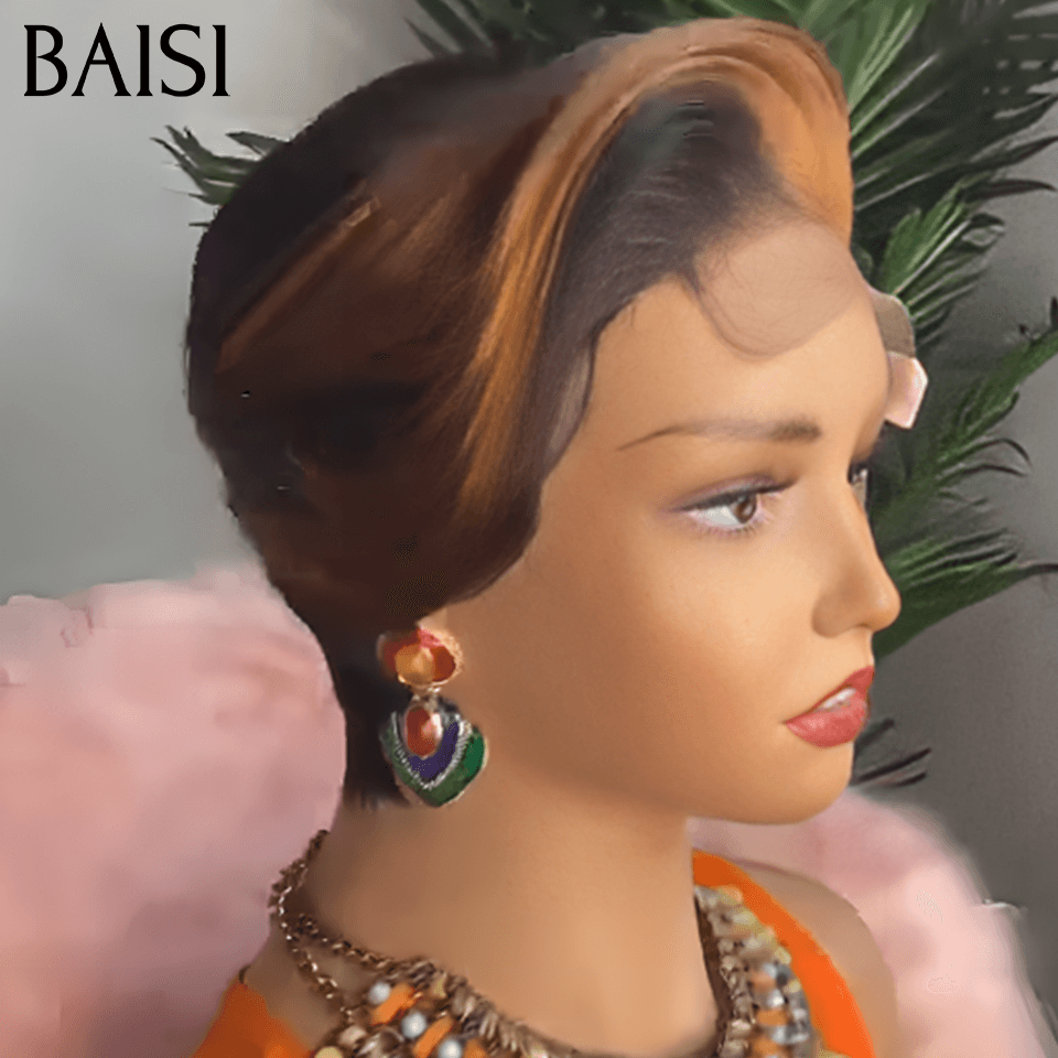 48H Livraison TVA 0€ BAISI Perruque Pixie bouclé petite coupe Noir 6 pouces 59€ ou 13X4 pixie Lisse 1B#Mix30# 78€ ou blonde 613# 89€ En 100% Cheveux Humains