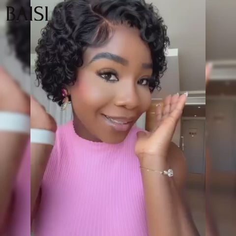 BAISI Perruque Pixie curly Wave 69€ en Couleur noir En 100% Cheveux Humains