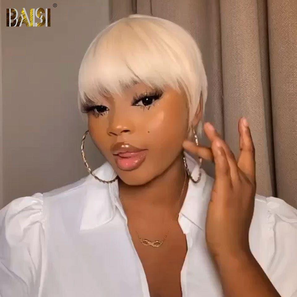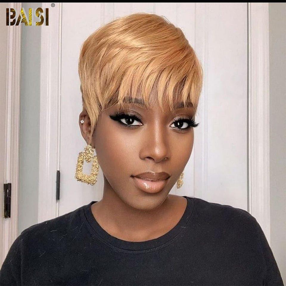 48H Livraison TVA 0€ BAISI Perruque Pixie Lisse 4 Couleurs Fabriqué à la Machine noir 45€ en 100% Cheveux Humains