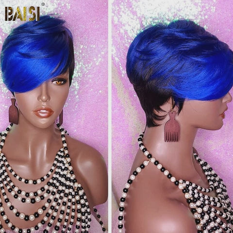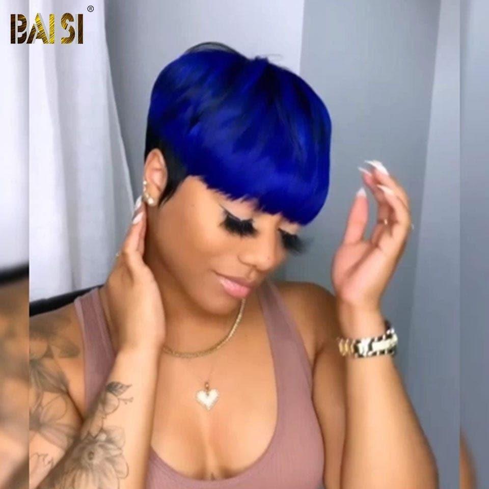 BAISI Perruque Pixie Lisse En Couleur Noir bleu 55€ en 100% Cheveux Humains