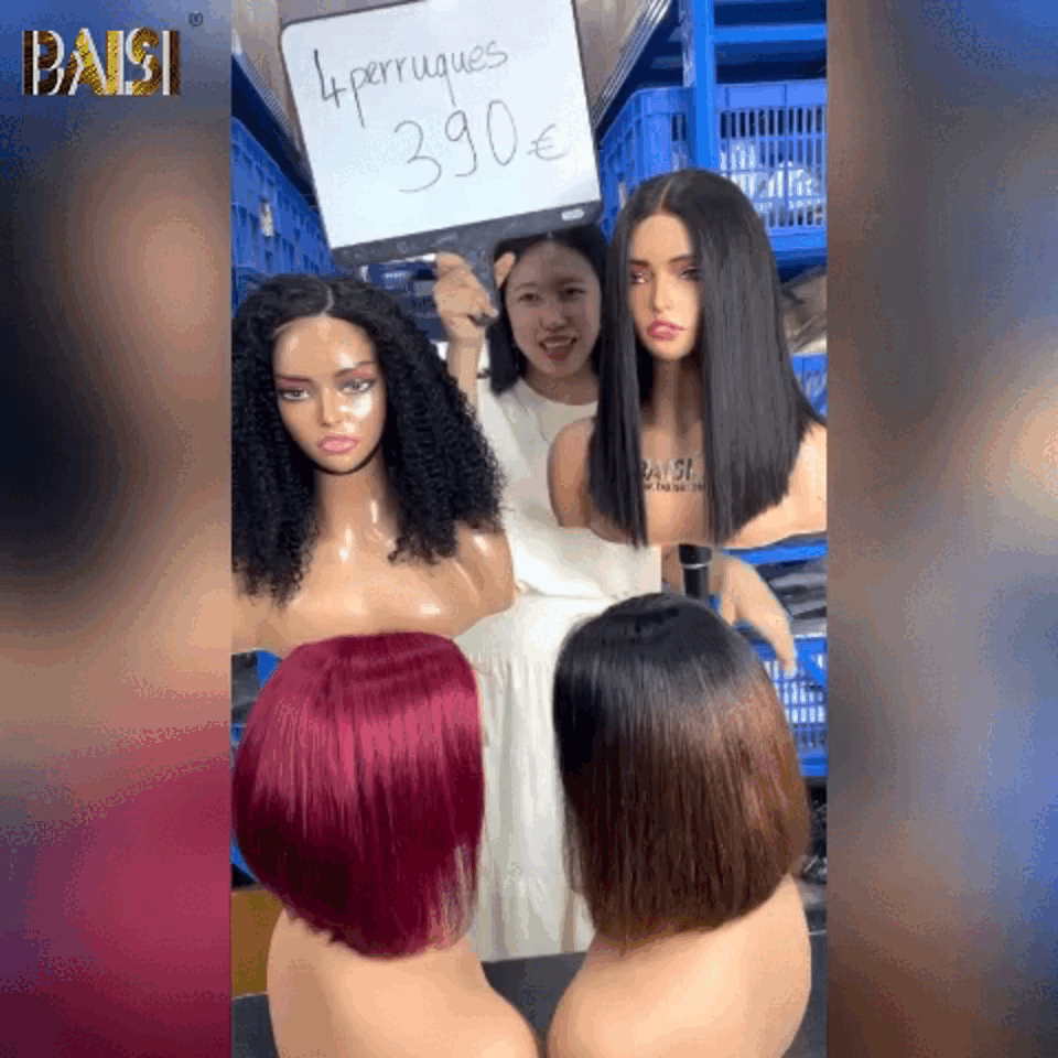 BAISI 3 Perruques en Gros 158€ pour revendre moitié prix Lisse BOB 13x4 lace Lisse en couleur NOIR et Bordeaux et 4x4 lace Lisse 10 Pouces en 100% vrais cheveux humains mp50