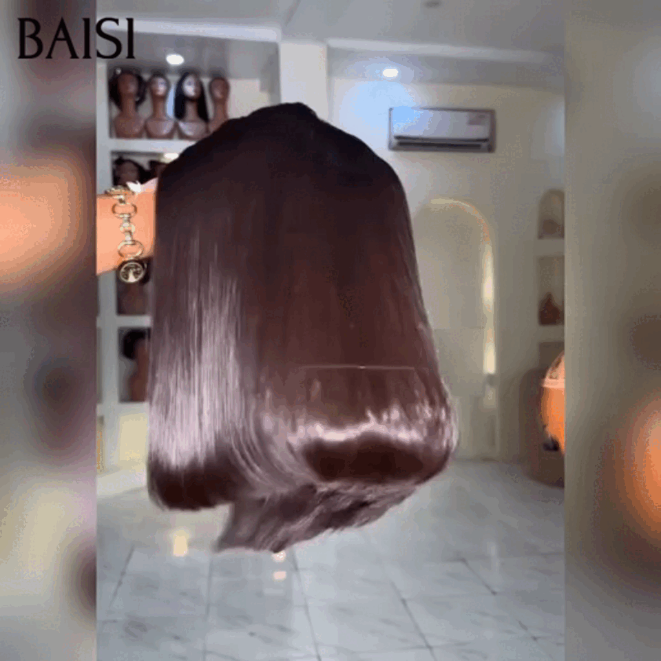48H Livraison TVA 0€ BAISI Perruques de Luxe Vietnam Hair 8 Pouces 69€ 2X6 Lace Perruque BOB Noir Lisse en 100% Cheveux Humains Vietnam Hair 300% densité plus de 20 ans d' utilisations B