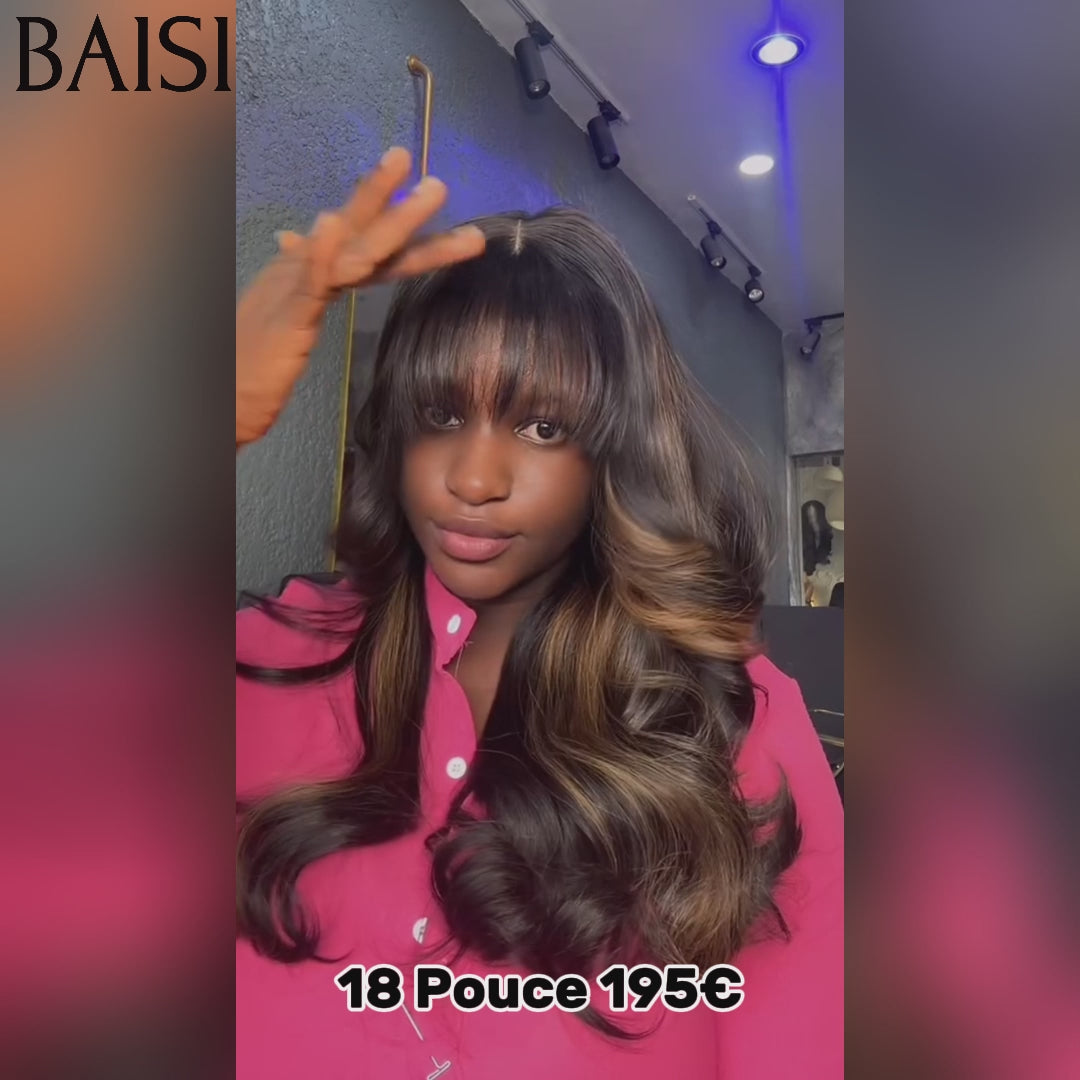 BAISI Perruques de Luxe Naturelle Wave 300%densité 18 pouces Couleurs personnalisées avec Frange Fabriquées par les cheveux double drawn FR38