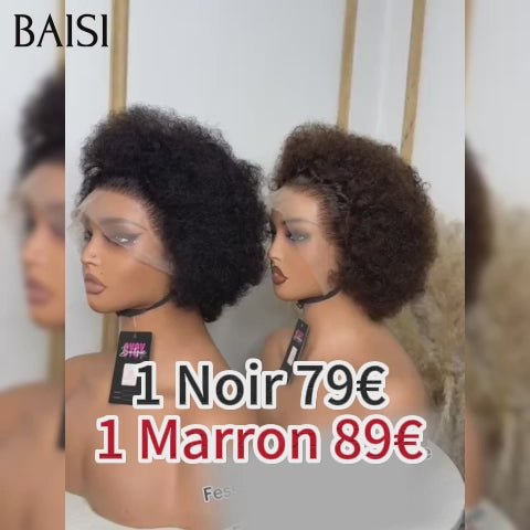 BAISI 13X4 lace Perruques Grande Promo arrivage pixie coupe afro Curly En marron #4 En 100% Cheveux Humains