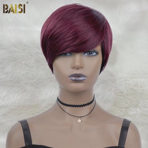BAISI petite coupe rouge bordeaux 99J en 100% vrais cheveux humains
