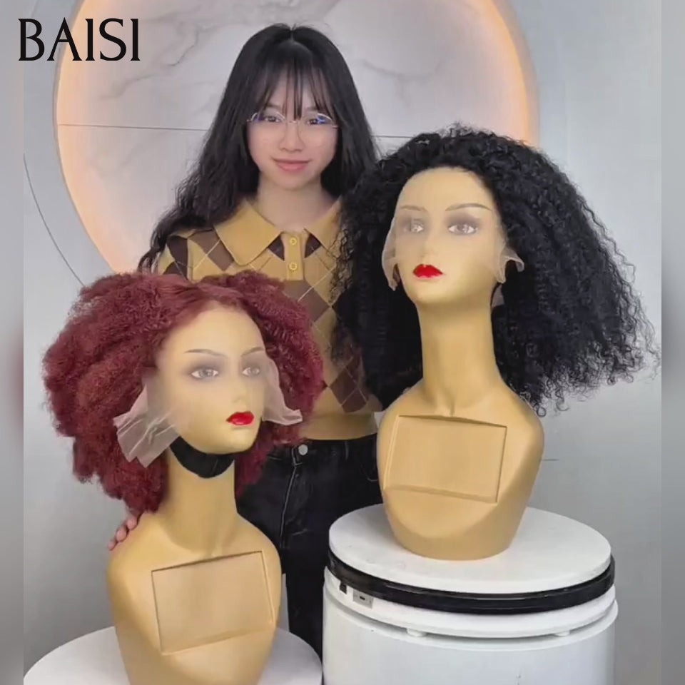 BAISI pour revendre 2 perruques 130€ 13x4 lace frontal afro curly 14 Pouces en 2 couleurs NOIR et Bordeaux en 100% vrais cheveux humains