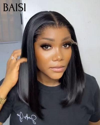 BAISI Prix 50€ Perruque Pixie Afro curly bouclé Noir sans lace sans colle ou 4X4 lace Lisse 14 Pouces en 100% cheveux humains MP50