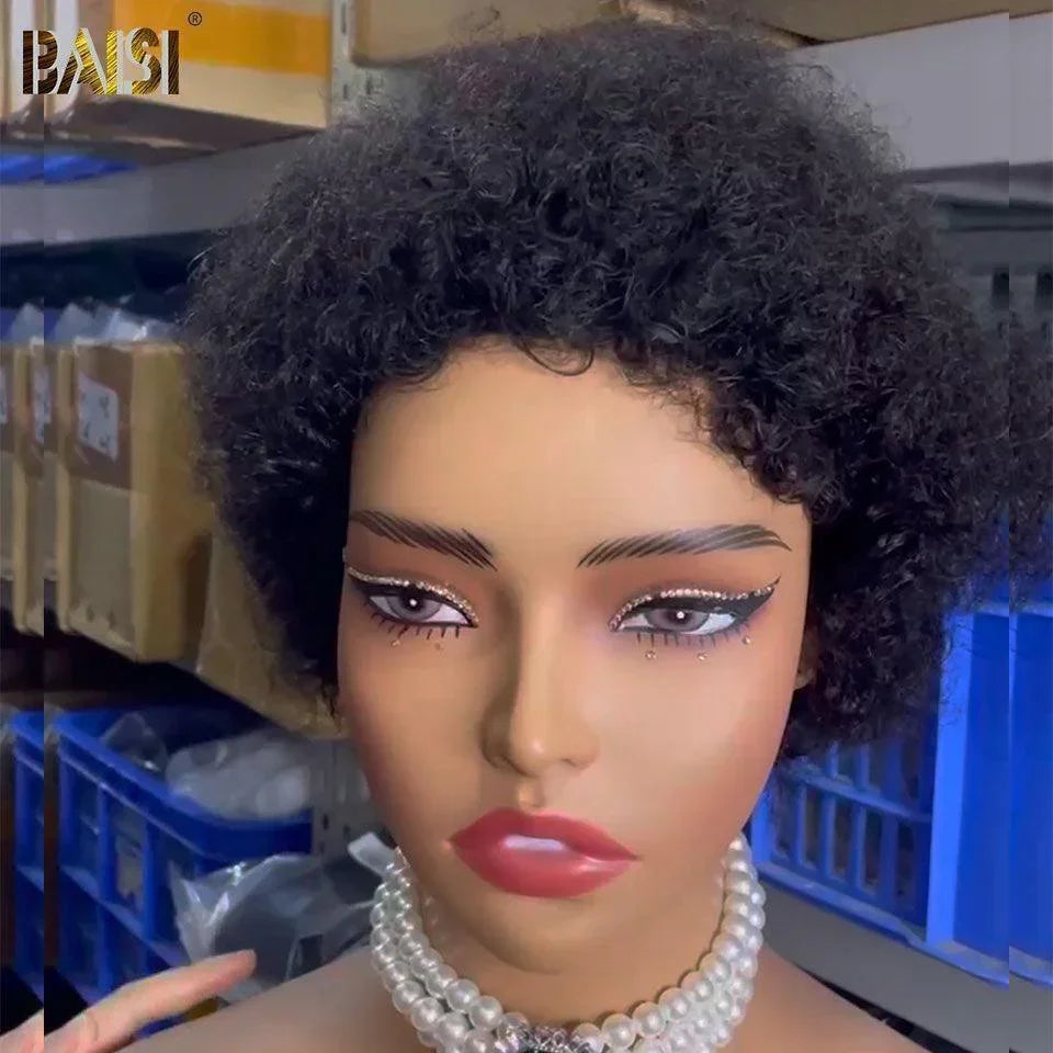 BAISI Sylla Perruque petite coupe sans lace sans colle facile à porter et à enlever 1005 vrais cheveux humains