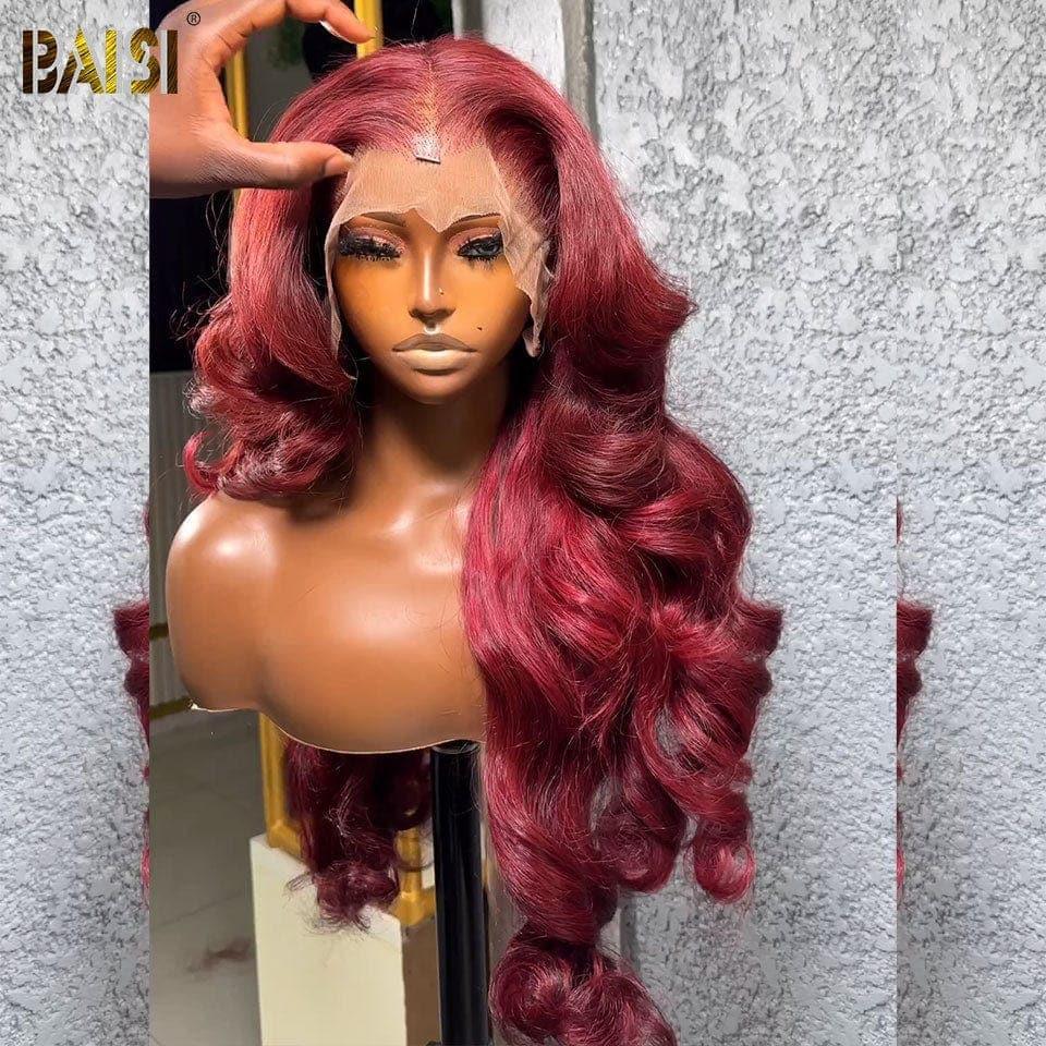 BAISI 13X4 lace Perruque Body Wave Rouge Bordeaux 20 pouce 109€ en 100% Cheveux Humains