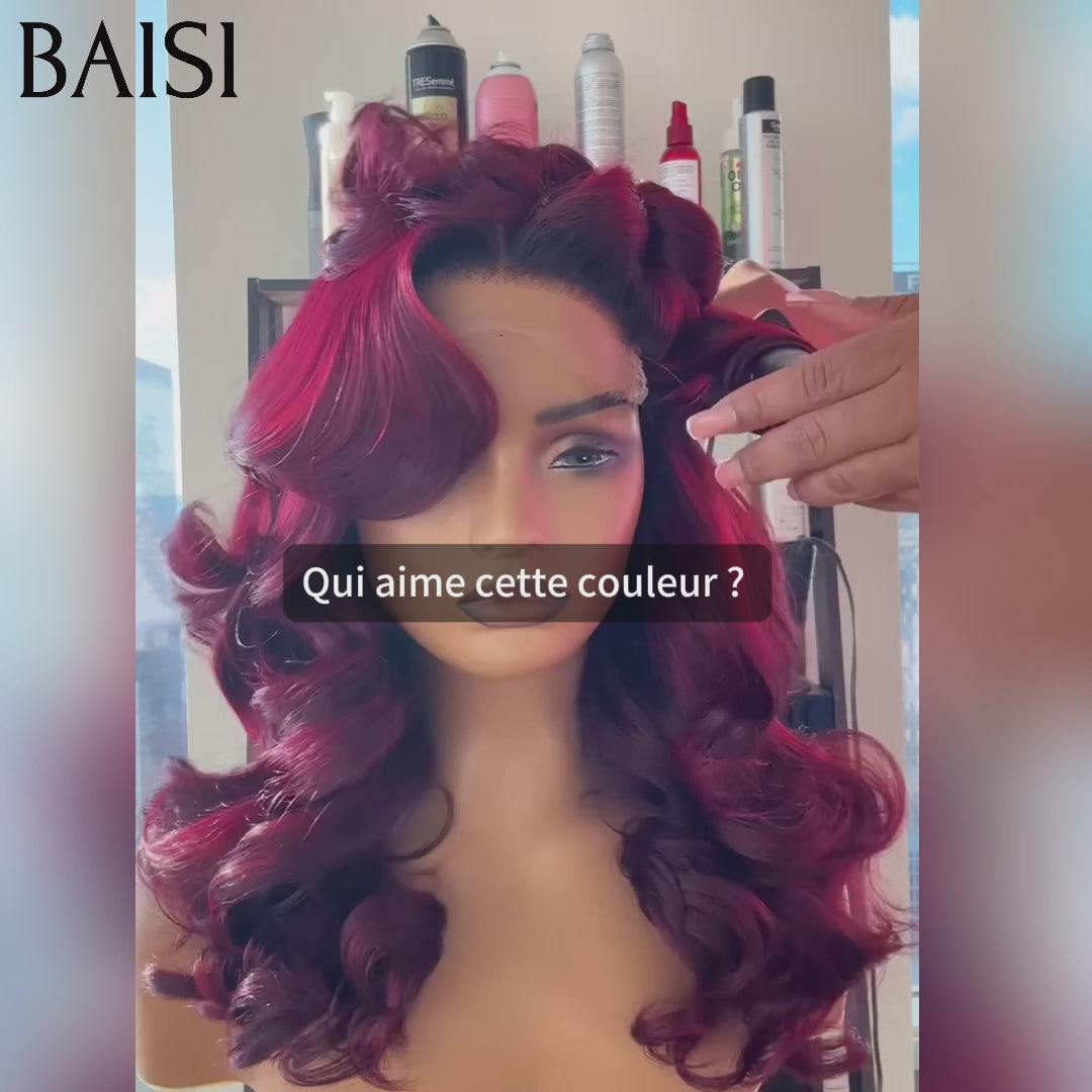BAISI 13X4 Lace Frontal Perruque Bouclée Wave 16 pouces 136euro en couleur 99J# En 100% Cheveux Humains