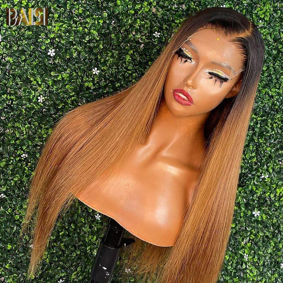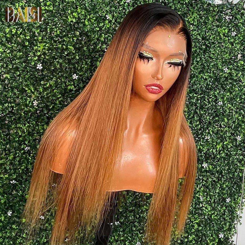 Achetez 2 Prix D'usine BAISI Achetez 2 perruques minimum au prix d'usine fournisseur Frontal Lace Perruque Lisse En Couleur Marron 1BT4# sans solle (Pas Besoin de Code)
