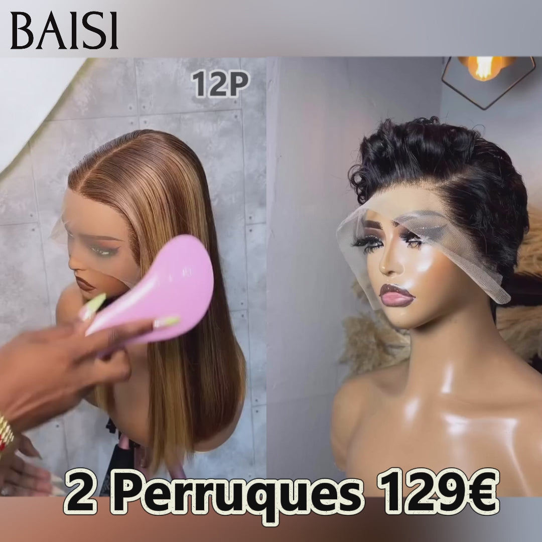 BAISI vente flash 2 Perruques 129€ 13X4 lace pixie noir et 13X4 lace lisse 12 pouces 4#27#en 100% vrais cheveux humains FR38