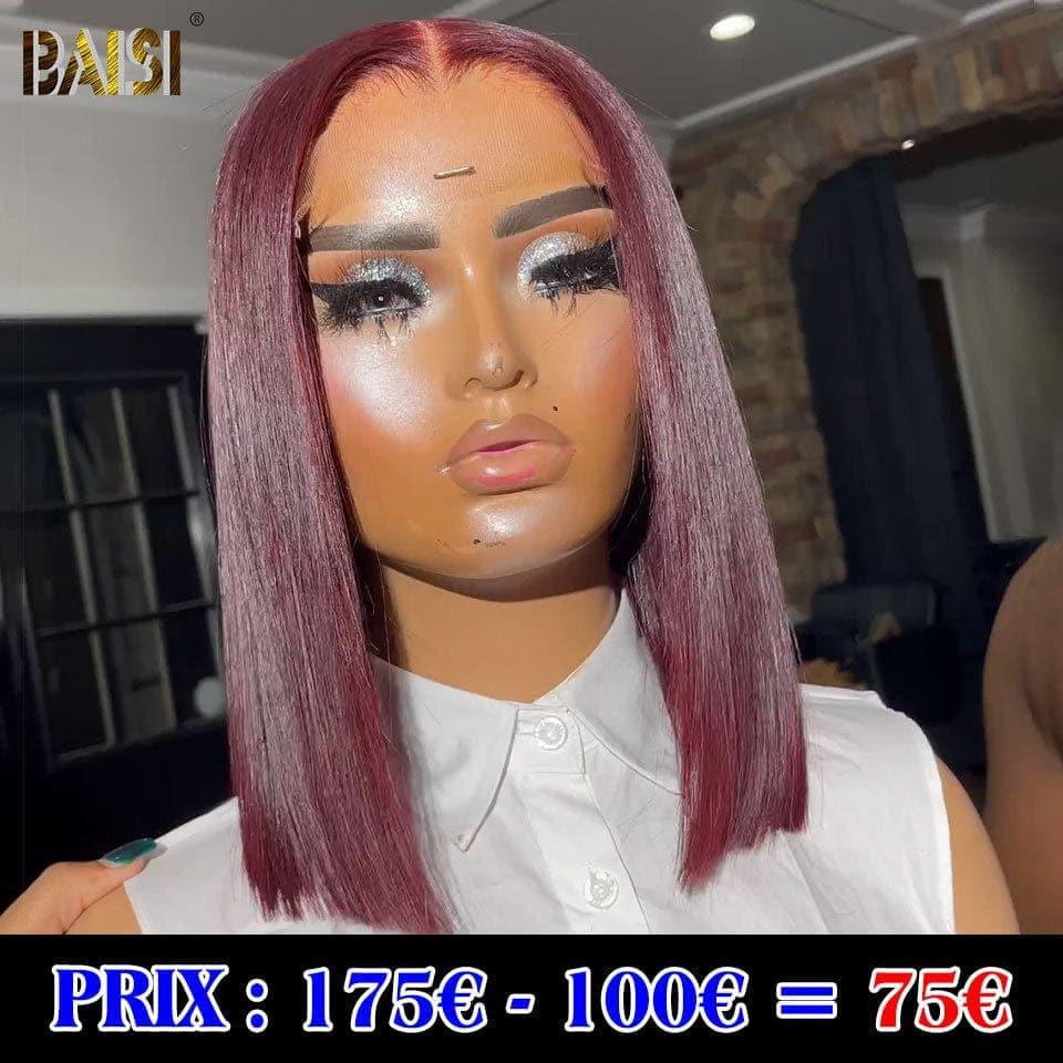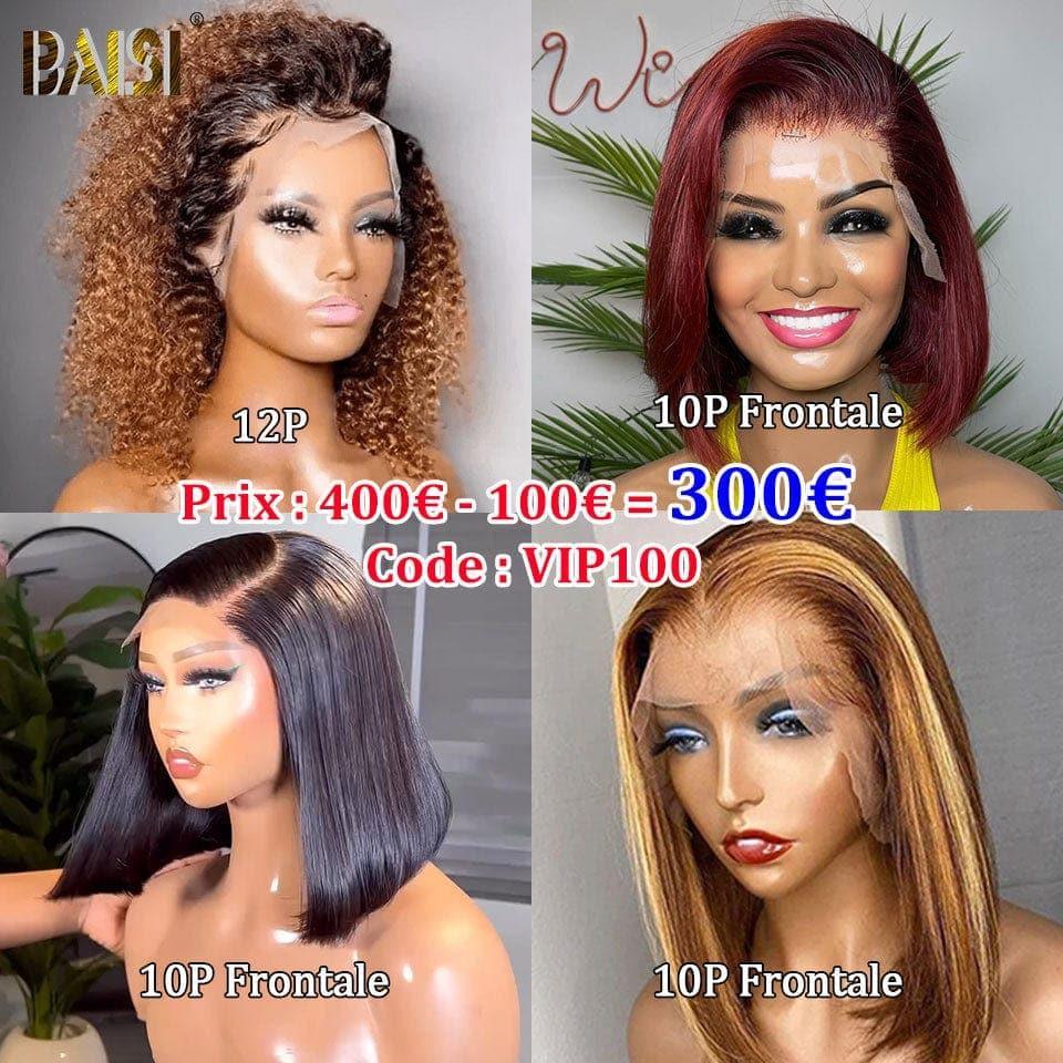 Promo Noël BAISI vente flash 2 Perruques 148€ BLACK FRIDAY 13x4 lace Lisse 14 Pouces et pixie egg wave en 100% vrais cheveux humains code: VIP100