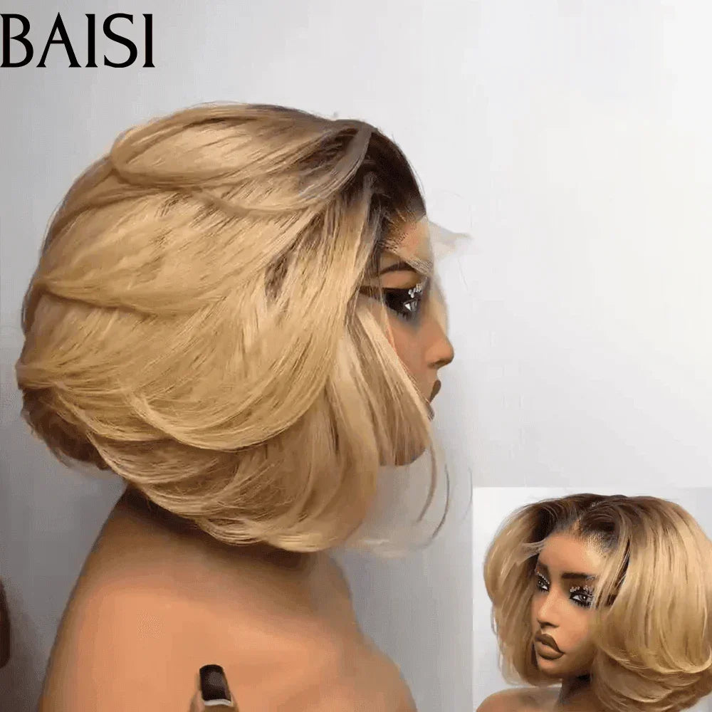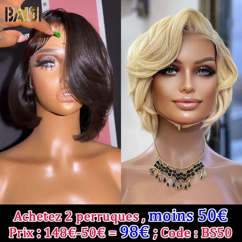 BAISI HAIR FR 2 Pixie Perruques 66€ sans Colle finger wave NOIR et 13X4 lace pixie Lisse 100% Cheveux Humains