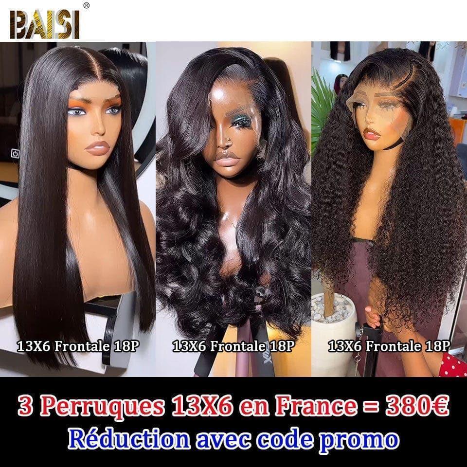 BAISI 2 Perruques 16 Pouces 159€ 13X4 lace curly wave et sans Colle Lisse avec Frange Moitié Prix Réduction avec code promo en 100% vrais cheveux humains