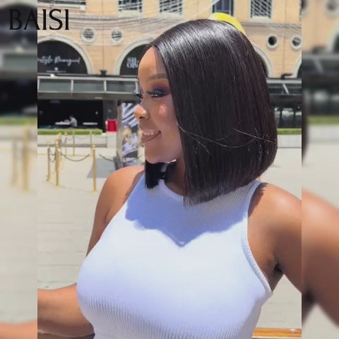 BAISI 13x4 Straight Bob Wig em preto sem cola renda frontal corte fácil de usar 100% cabelo humano B