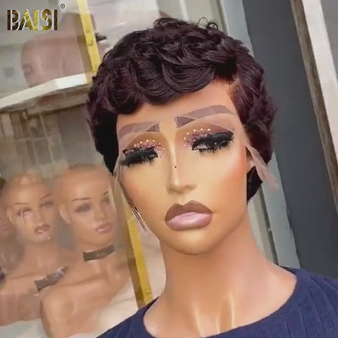 BAISI Pixie Cut Lace Frontal 13x4 Curly wave en couleur Mixte 4T30# 52€ ou Marron 69€ en 100% Vrais Cheveux Humains D