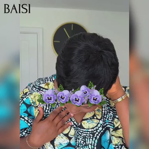 BLACK PROMO 48H reçu BAISI PROMO BAS PRIX 39€ pixie sans lace lisse NOIR petite coupe fabriqué à la machine en 100% cheveux humains