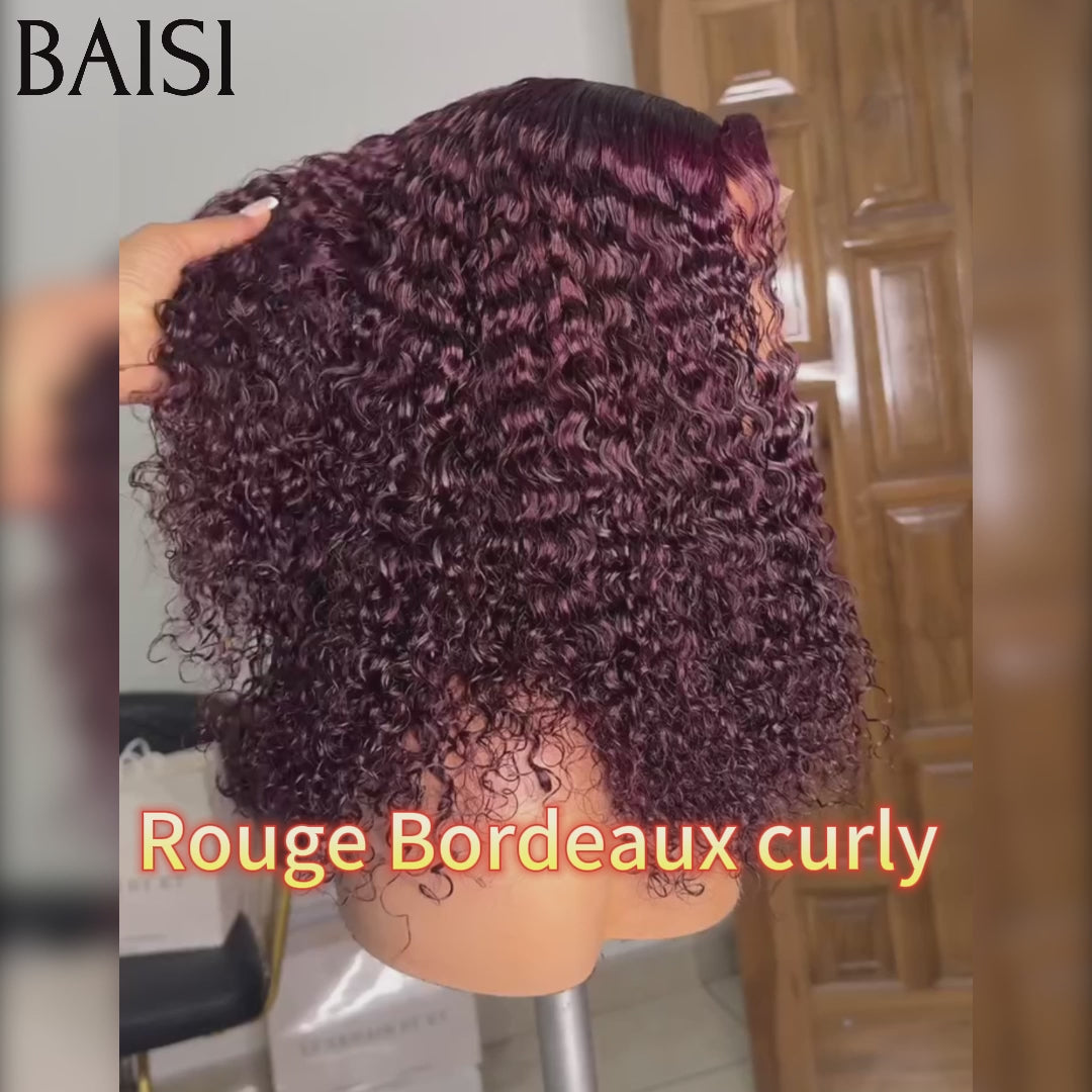 Achetez 2 Prix D'usine BAISI Achetez 2 perruques minimum au prix d'usine fournisseur 4x4 Perruque 14 pouces water Wave Rouge Bordeaux 99J (Pas Besoins De Code)