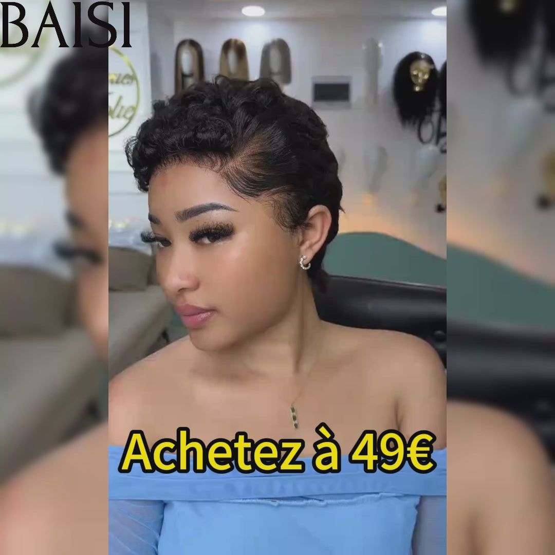 48H Livraison TVA 0€ BAISI Perruque pixie vague 6 pouce 49€ frontale 13*4 100% cheveux humains 100% identique à la photo