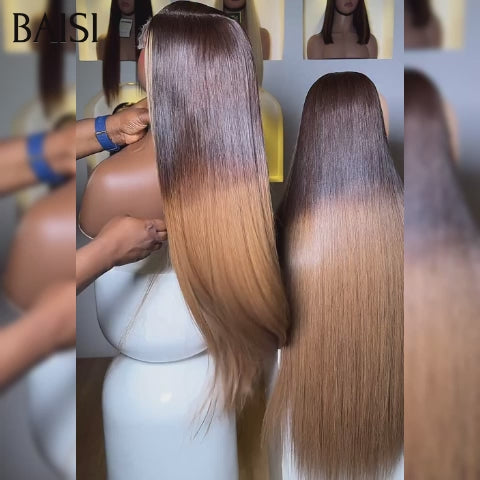BLACK PROMO BAISI 2X6 lace closure perruque Lisse Haute Qualité en couleur Miel avec racine Marron 250% Densité SDD BONE Straight 100% Vietnam Hair