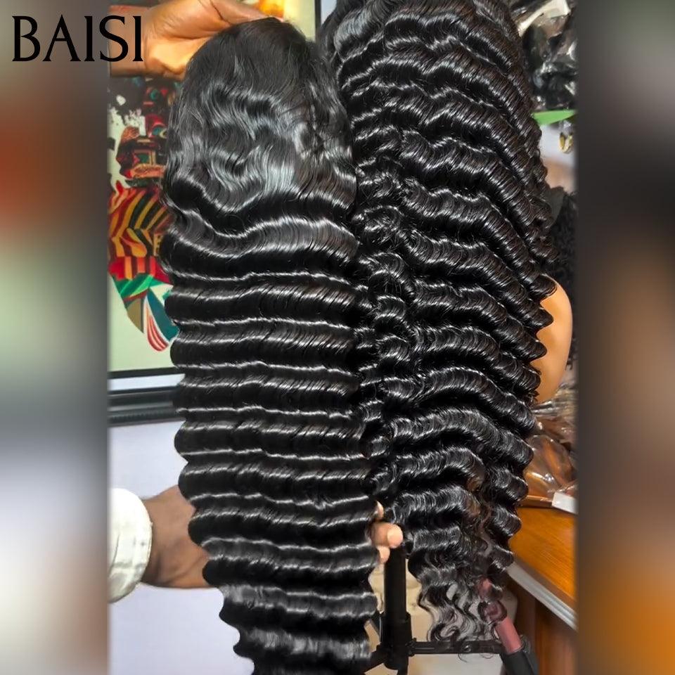 Achetez 2 Prix D'usine BAISI Achetez 2 perruques minimum au prix d'usine fournisseur 13x4 Lace Frontal Perruque deep Wave En 100% Cheveux Humains (Pas Besoins De Code)