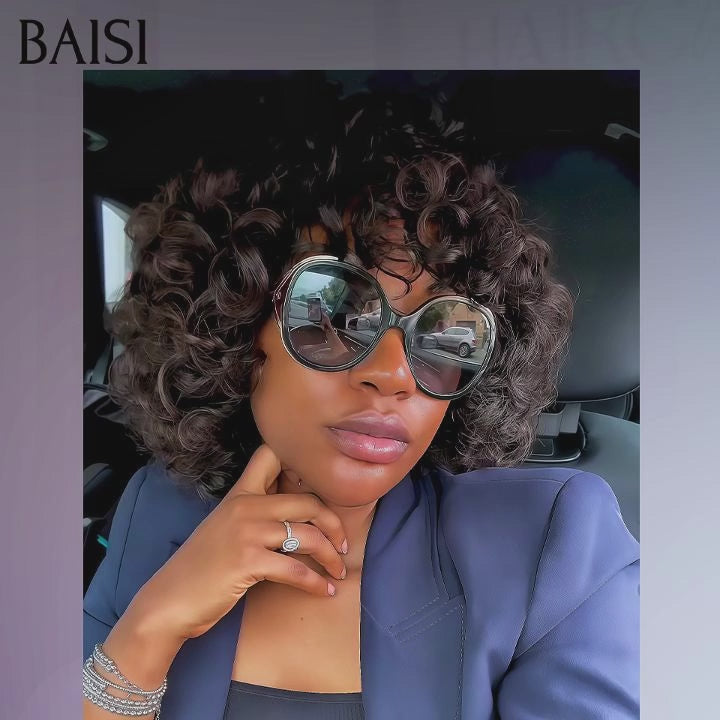 BLACK PROMO 48H reçu BAISI BLACK FRIDAY BAS Prix Perruque promotion 69€ 12 pouce egg wave avec frange Fabriquée A La Machine sans Colle en 100% Cheveux Humains