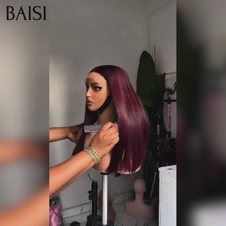BLACK PROMO BAISI BLACK FRIDAY Offre limitée 13x4 Lace Frontal Perruque Lisse Rose Foncé en 100% Cheveux Humains