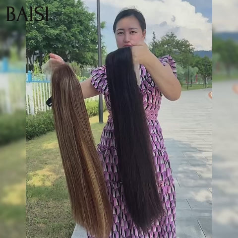 BAISI Promotion 2 perruques LONGUES 13X4 lace frontal Lisse Marron Mixte Miel et NOIR 32 Pouces 100% vrais cheveux humains