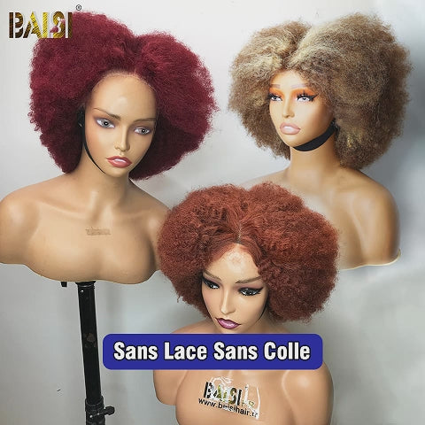 Peruca BAISI 13x4 Afro BCP em cores pré-arrancadas, sem necessidade de cola em cabelo 100% cru, renda já cortada