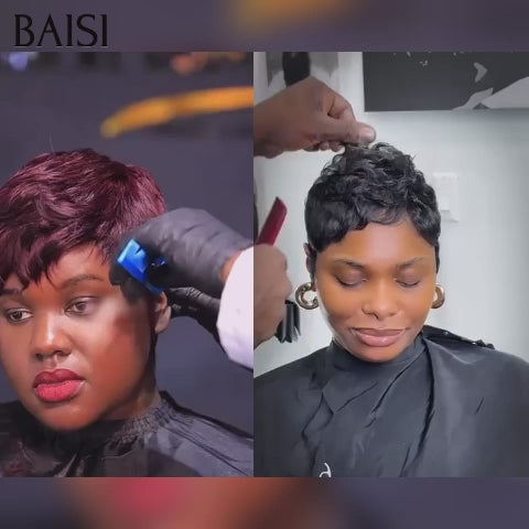 BAISI 2 Perruques = 55€ pixie sans Colle Bordeaux et NOIR ou 2 Couleurs perruques Frontal 246€ en 100% vrais cheveux humains