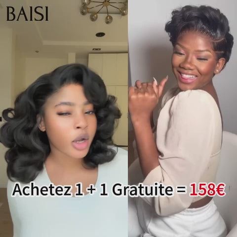 BAISI 1 Acheté + 1 Gratuite = 158€ 13X4 lace bob boucle wave et pixie 6 Pouces en 100% vrais cheveux humains (pas besoin de code)