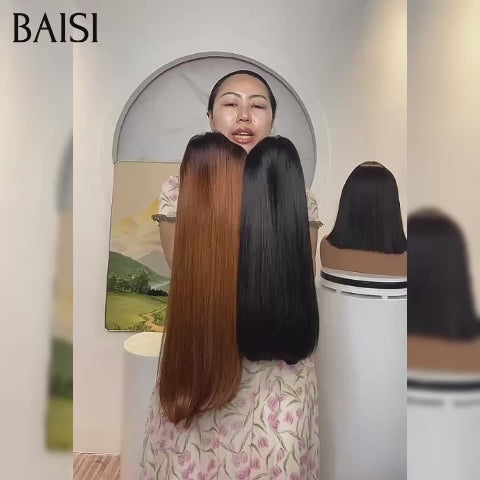BAISI 2 Perruques pour revendre 250€ Vietnamiennes hair 2x6 Lisse 14 pouces en couleur NOIR et 16 Pouces 1B30# 250% densité en 100% vrais cheveux humains