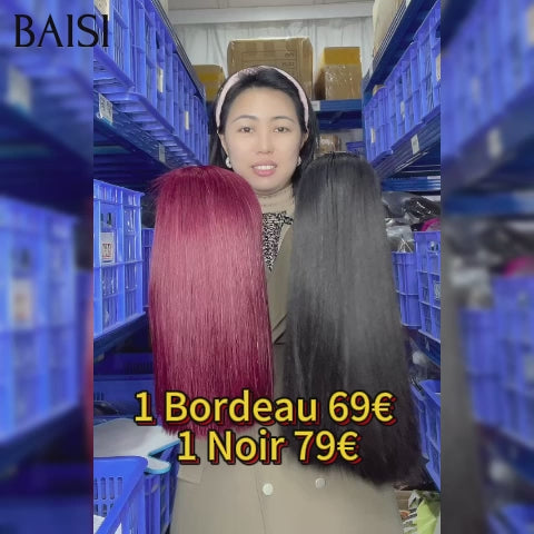 48H Livraison TVA 0€ BAISI 4X4 lace Bordeau 69€ 10 Pouces ou NOIR 79€ 12 Pouces Lot de perruque 120€ en 100% cheveux humains de bonne qualité au prix abordable