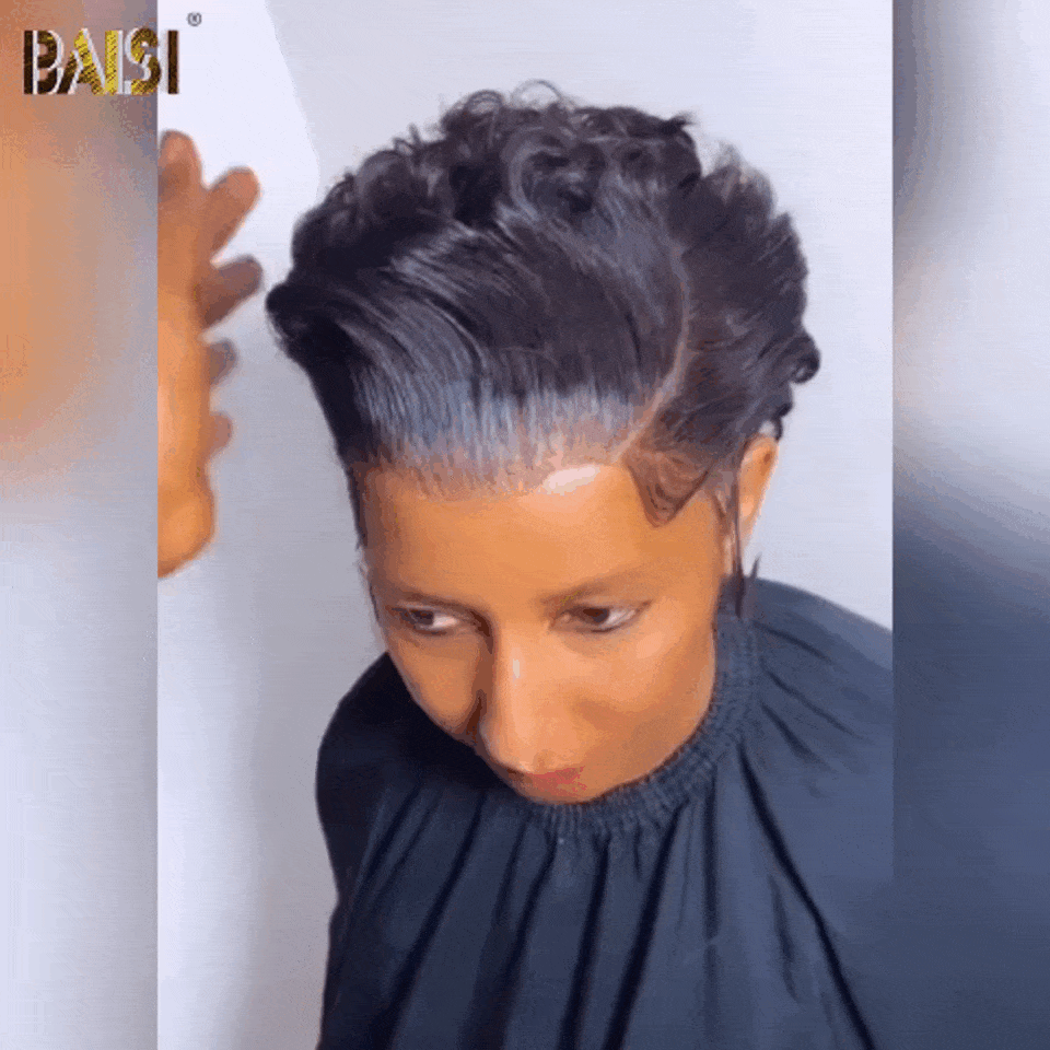 48H Livraison TVA 0€ BAISI 13X4 Frontale Perruque chioma Pixie petite coupe 6 pouces 58€ En 100% Cheveux Humains VIP100