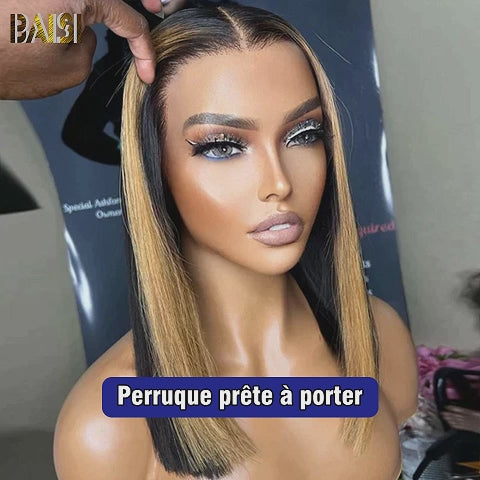BAISI 13X4 Straight Bob Wig Na cor # 1B # 27 fios pré-arrancados sem necessidade de cola em 100% cabelo cru renda já cortado