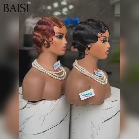 48H Livraison TVA 0€ BAISI 13X4 peruca curta onda de dedo Pixie na cor rosa € 88 em cabelo 100% humano BS50
