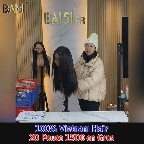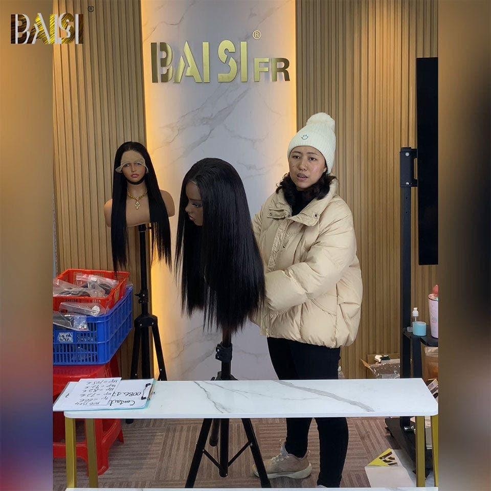 Achetez 2 Prix D'usine BAISI Achetez 2 perruques minimum au prix d'usine fournisseur 4X4 lace bouclé wave 1BT4# ou13x4 Lace Frontal Perruque Lisse 20 pouces A1 Fabriquées par les cheveux double drawn en Noir en 100% Cheveux Humains