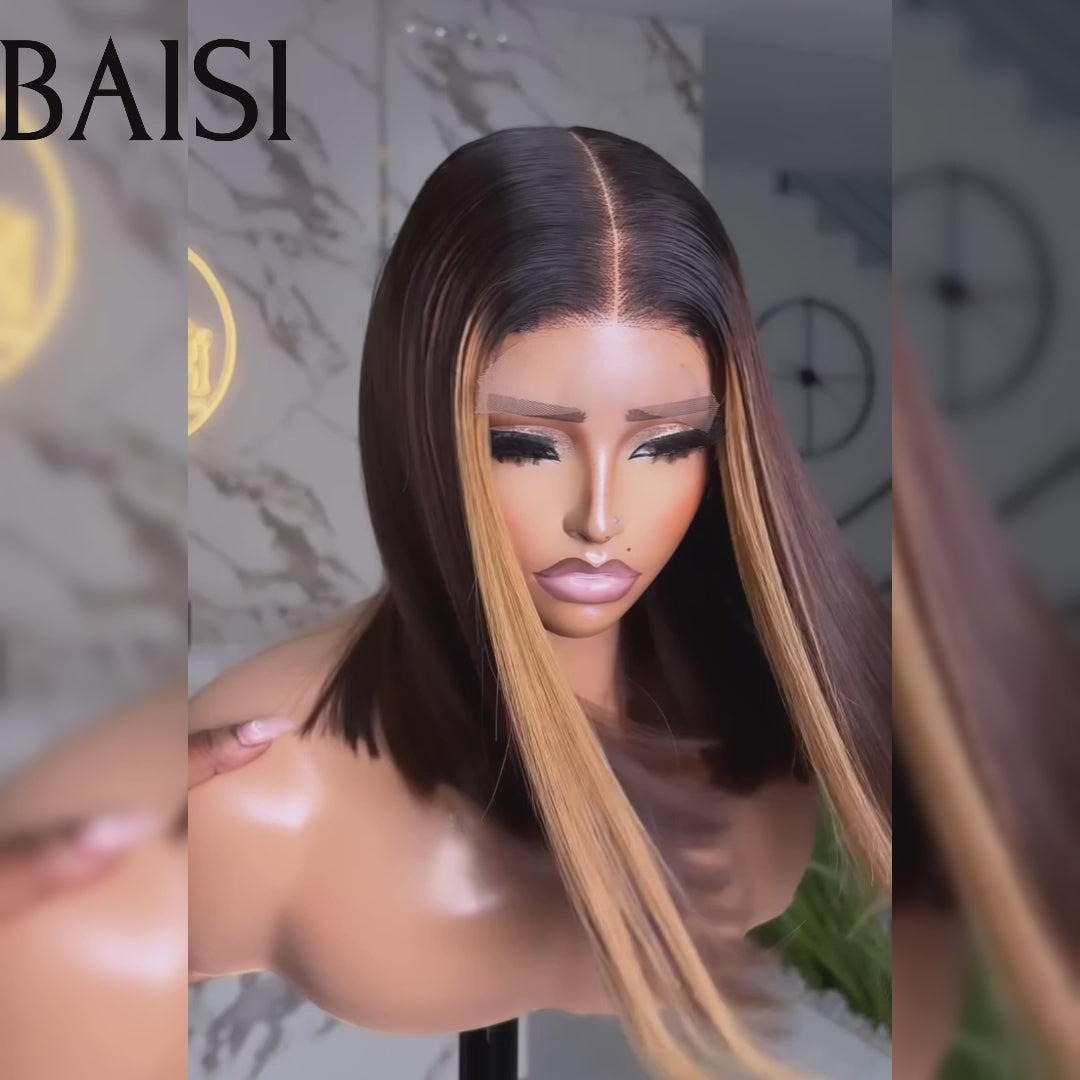 BAISI 2X6 Lace Brown Square Wig #4MIX#27 300% Densidade em 100% Cabelo Humano