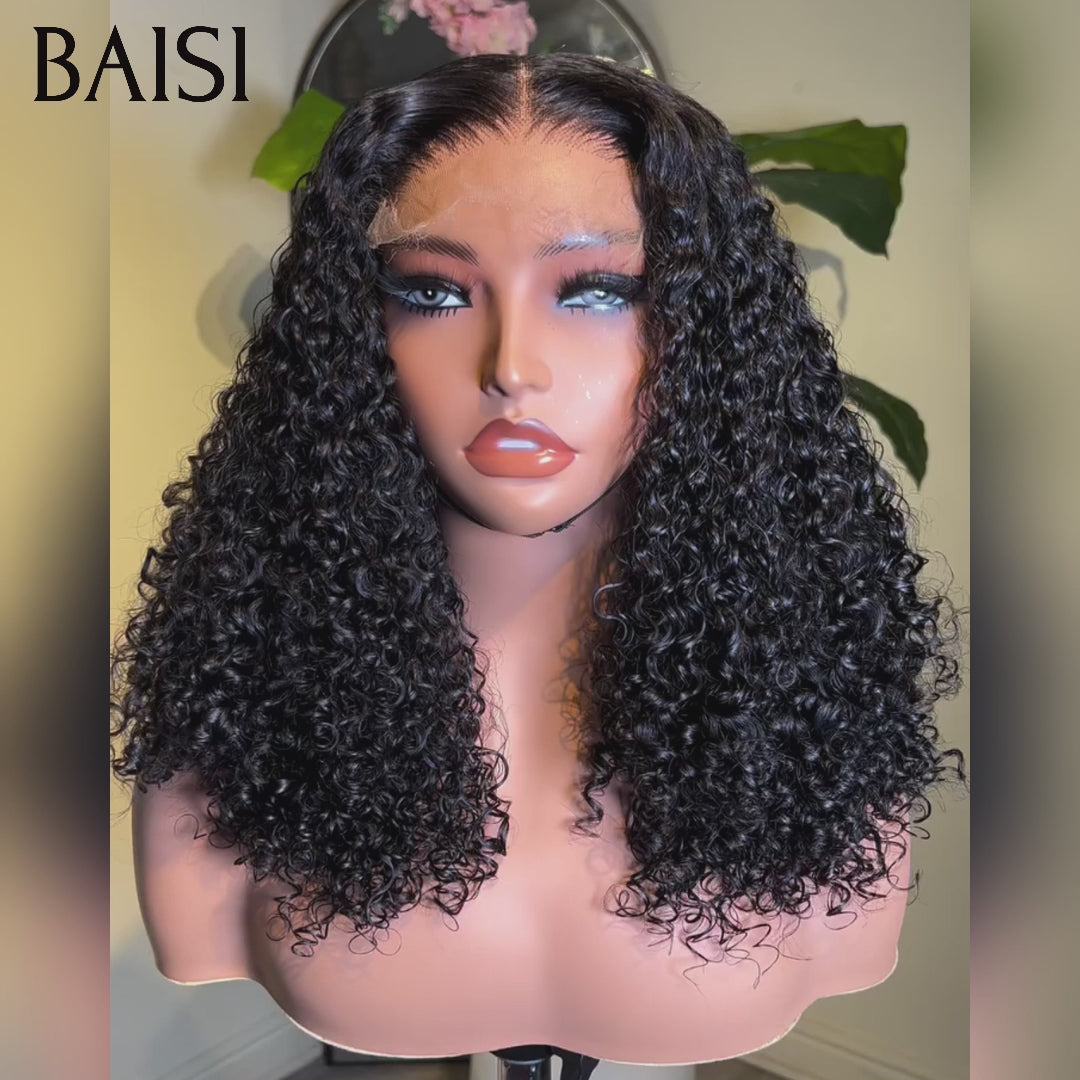 48H Livraison TVA 0€ BAISI Bob Perruque Bouclée Water Wave 4X4 lace 250% Densité 100% Cheveux Humains FR38