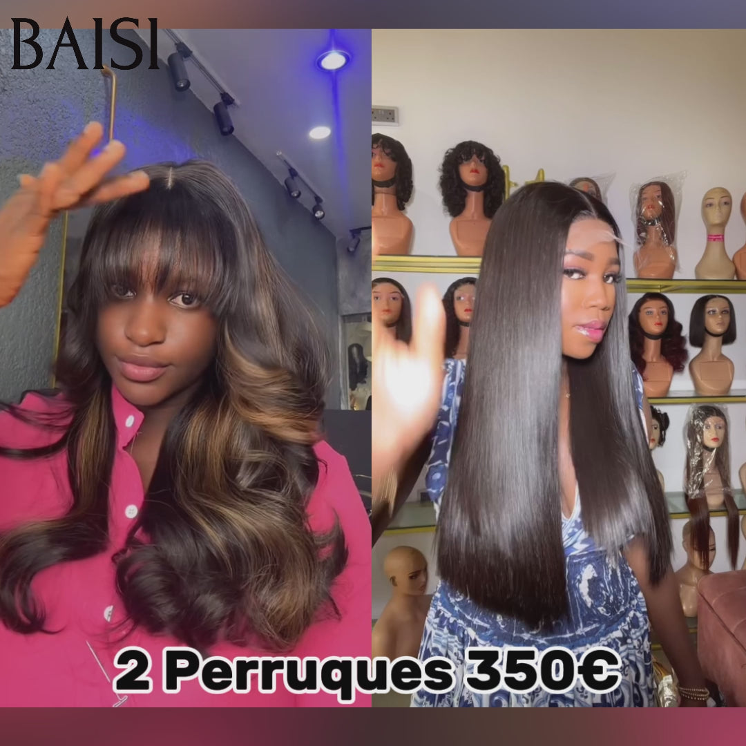 BAISI Lot De 6 Perruques Longue Abordable 645 Euro ou 2 perruques 2X6 laces Lisse 20 Pouces et avec frange 18 pouces de luxe En 100% Cheveux Humains MP50
