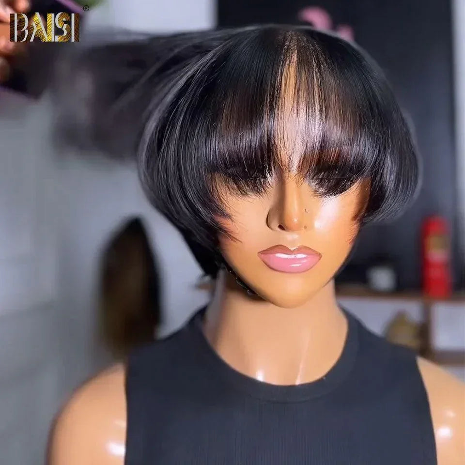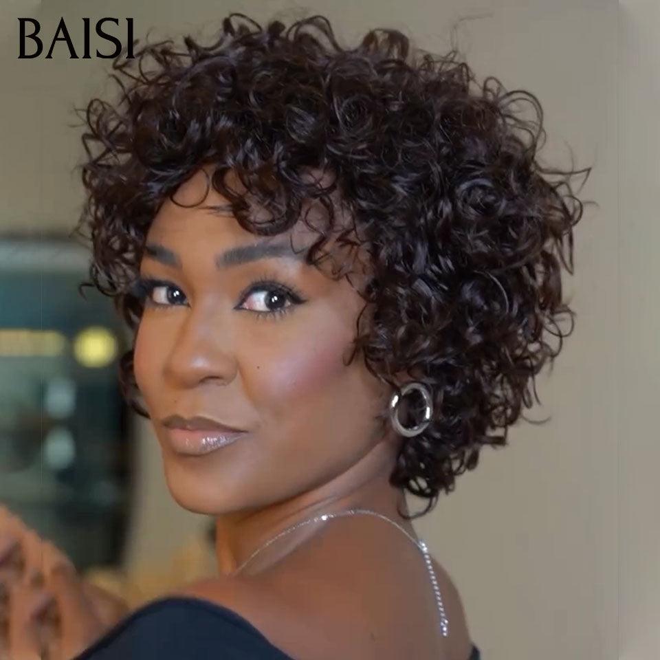 BAISI Achetez 1 + 1 Gratuite = 138€ 2 pixie NOIR ou Perruques petite coupe fabriqué à la machine 59€ moitié prix -9188 En 100% Cheveux Humains MP50