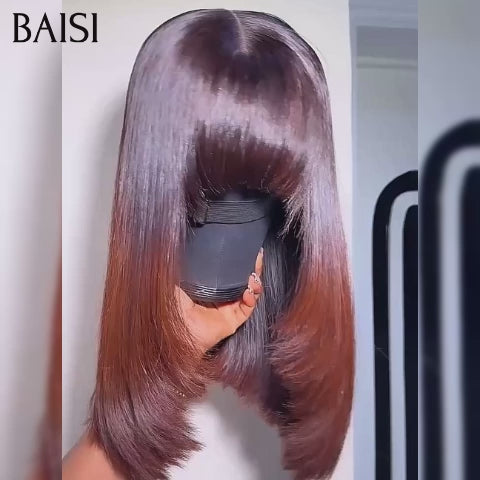 48H Livraison TVA 0€ BAISI perruque Bob lisse Avec Frange en couleur Marron avec racine NOIR de Luxe 8 Pouces 100% Vietnam Hair