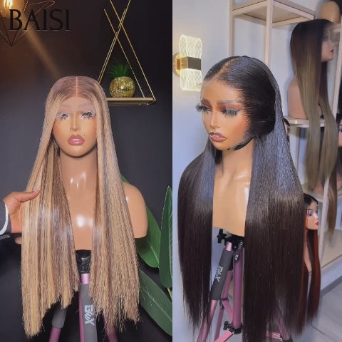 BAISI Achetez 1 + 1 Gratuite = 209€ 13X4 lace frontal 24 Pouces Lisse en couleur NOIR et Marron Mixte Miel En 100% Cheveux Humains